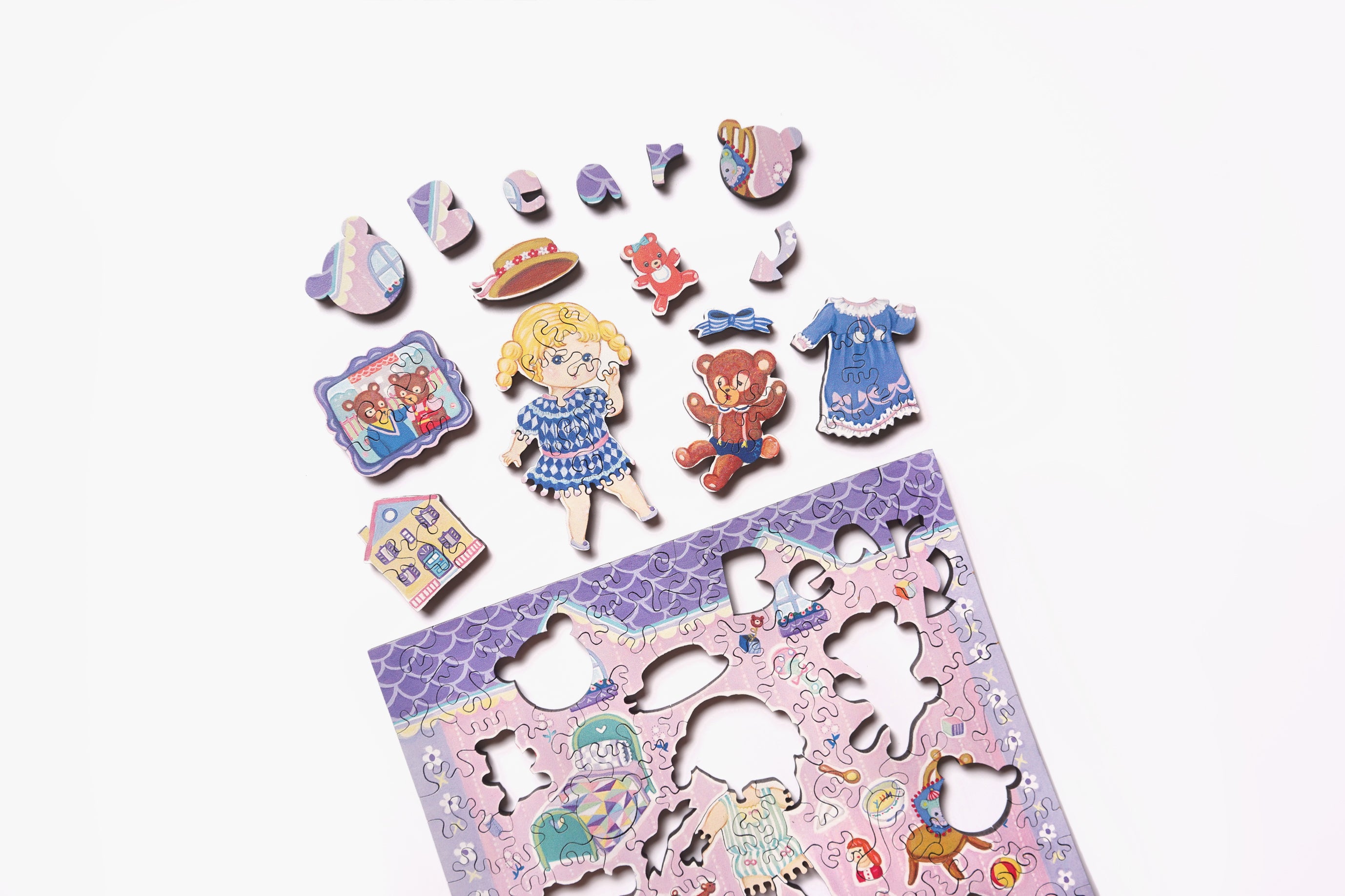 The blonde girl barged into the bear's home, causing chaos and even breaking the legs of their chairs! When the little bear returned home, it was very upset! Please use your nimble hands to help the three little bears piece together their warm home!