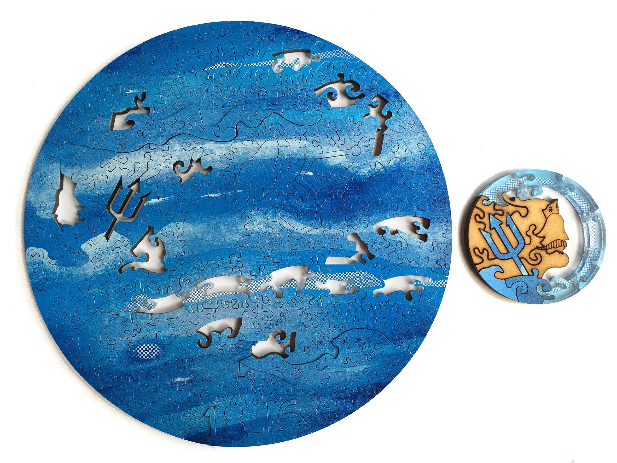 We’ve incorporated different thicknesses of wooden pieces to highlight the unique features of each planet. For example, you will find a slightly raised lunar symbol showcases the surface contours of the Moon.