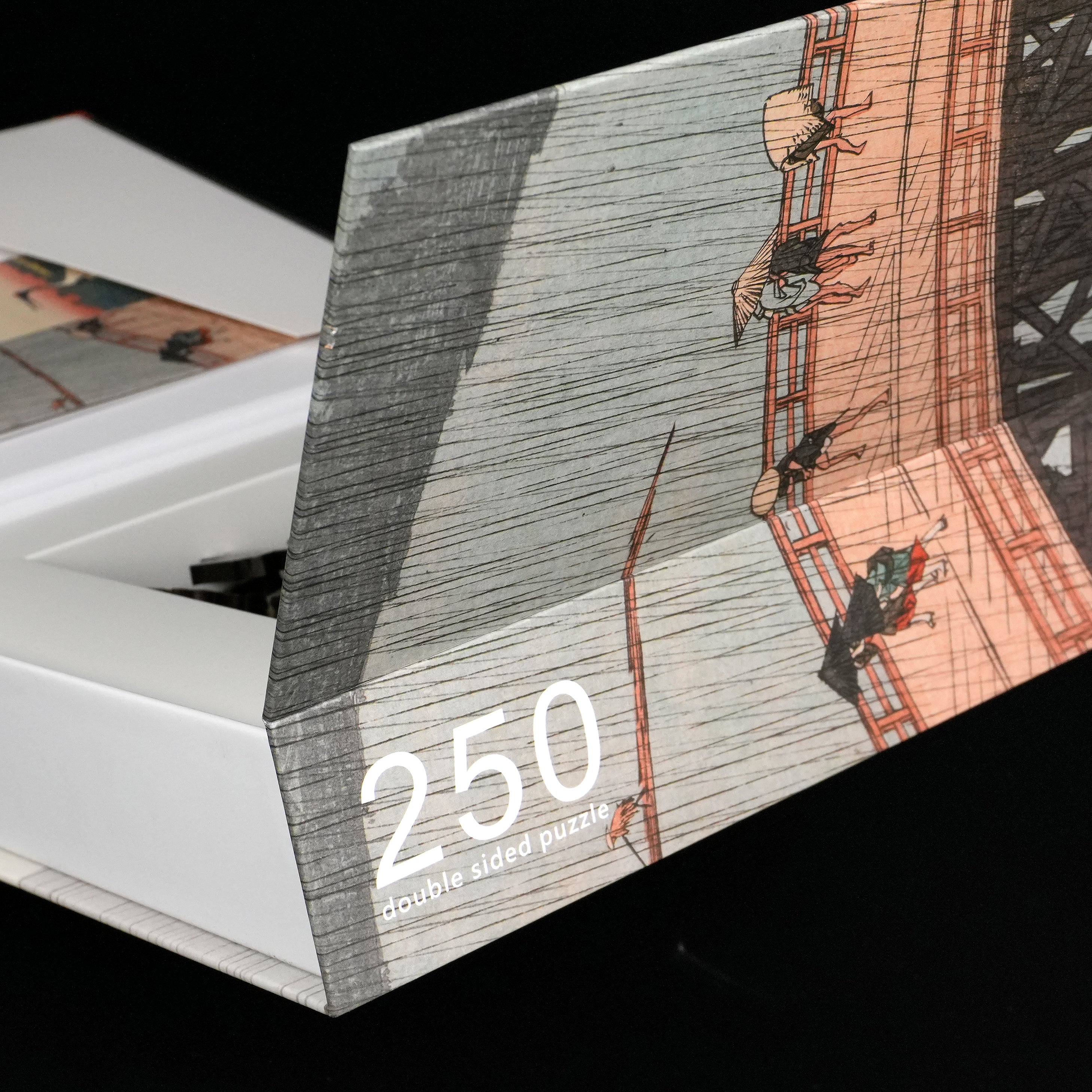 Open this box of art and immerse yourself in a blend of art and puzzling delight. On the left side of the box, find a brief introduction of the artist, and on the right, a booklet with the artist's life story and hidden pieces within the puzzles. Each double-sided wooden puzzle features two masterpieces by renowned artists.