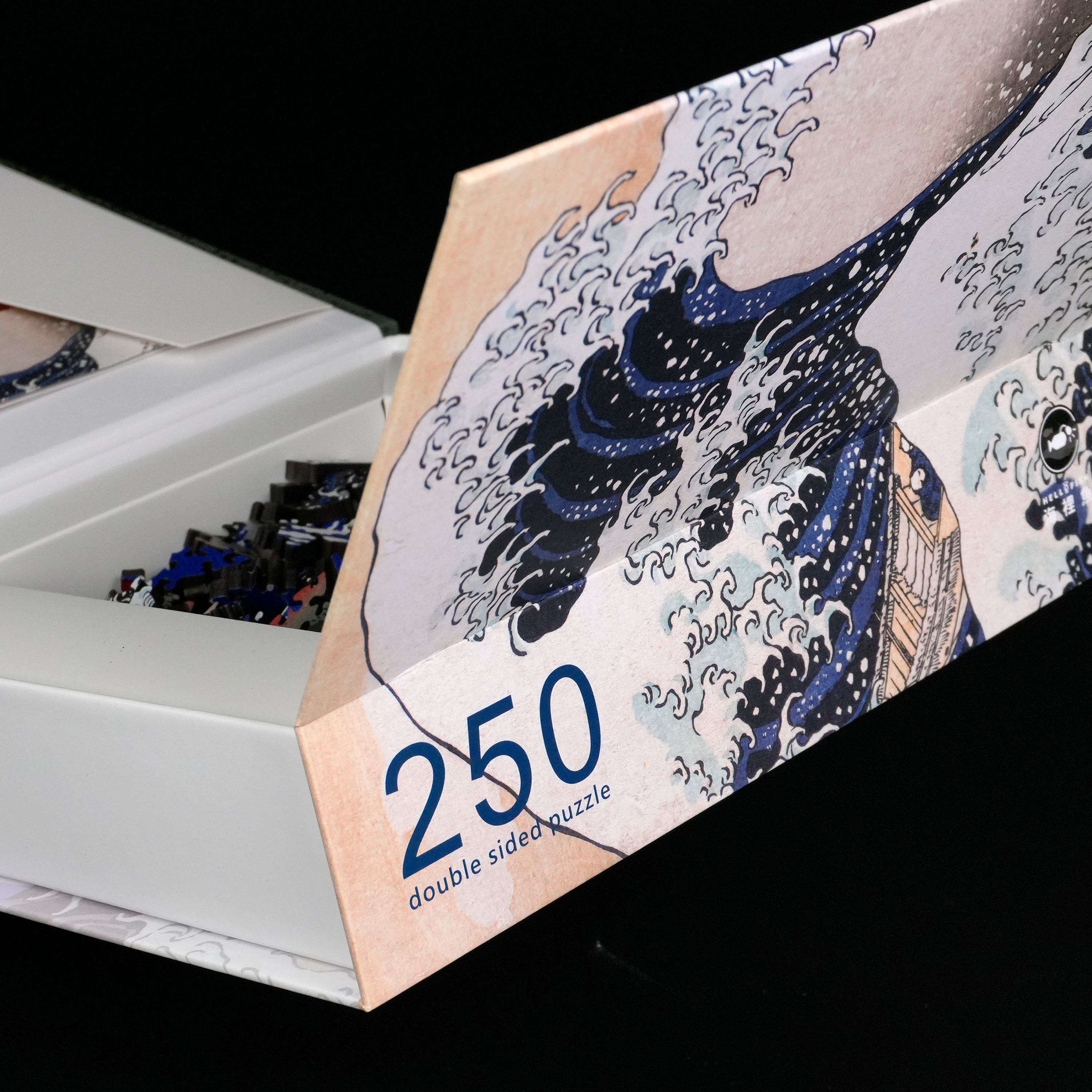 Open this box of art and immerse yourself in a blend of art and puzzling delight. On the left side of the box, find a brief introduction of the artist, and on the right, a booklet with the artist's life story and hidden pieces within the puzzles. Each double-sided wooden puzzle features two masterpieces by renowned artists.