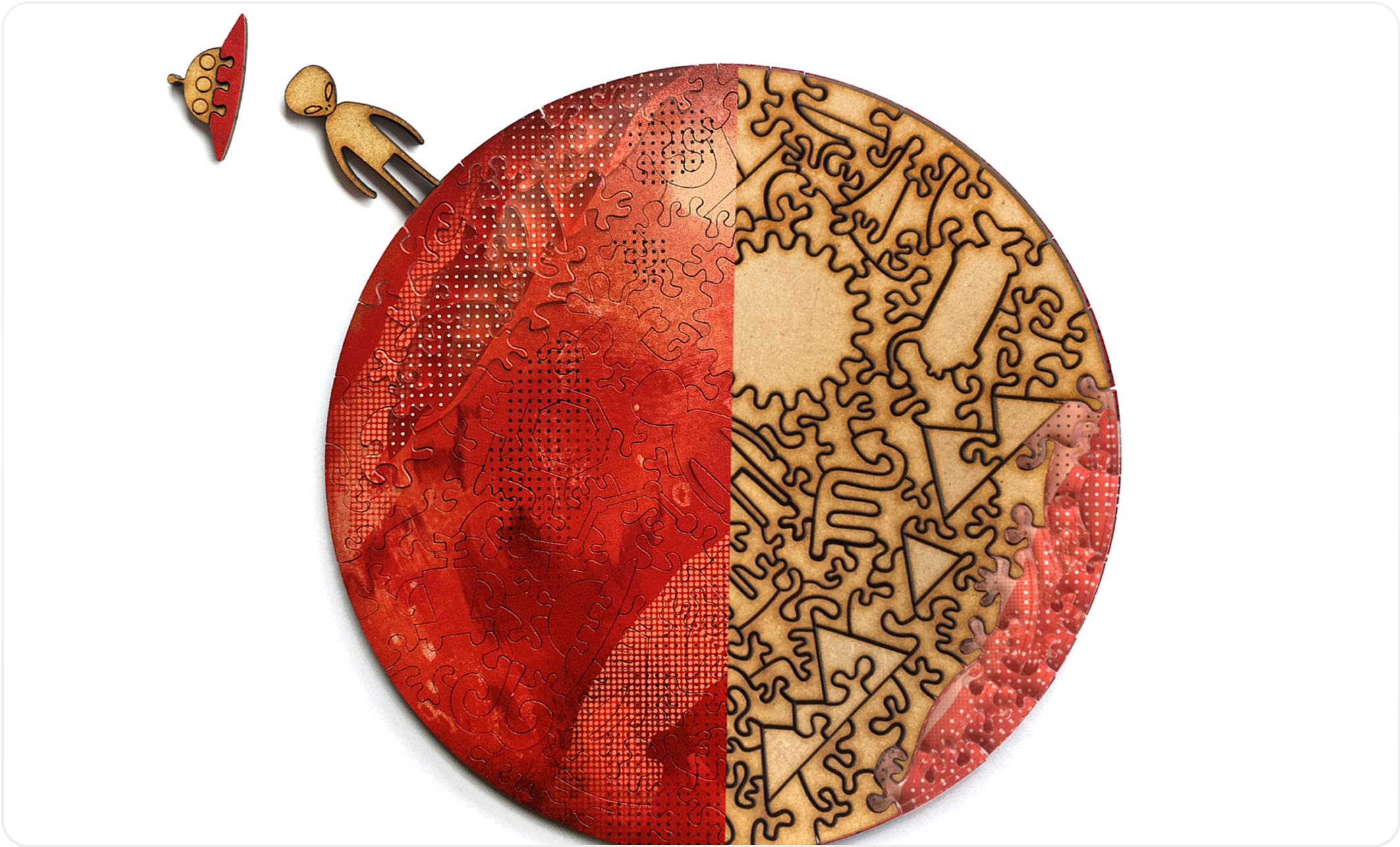 We’ve incorporated different thicknesses of wooden pieces to highlight the unique features of each planet. For example, you will find a slightly raised lunar symbol showcases the surface contours of the Moon.