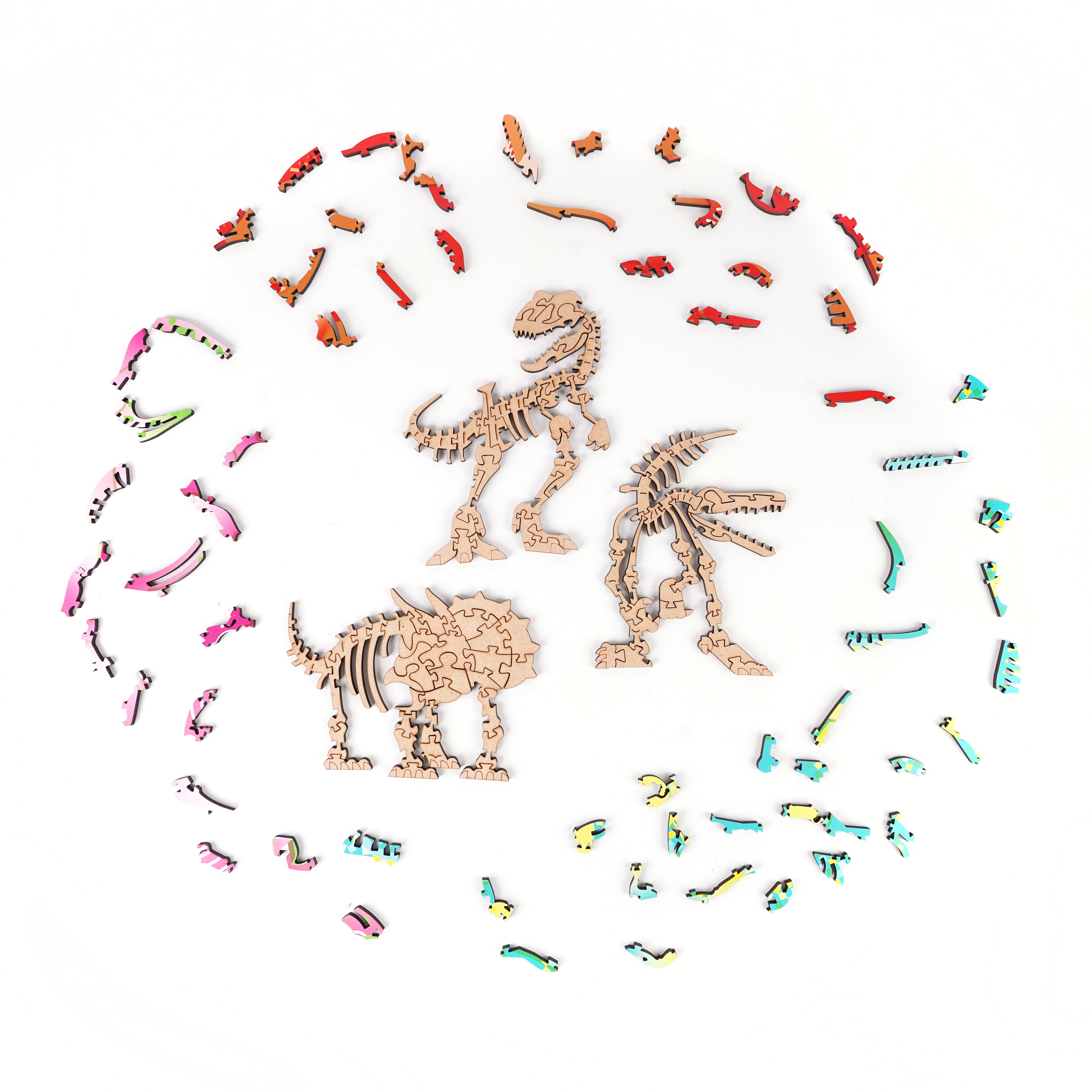 The Cretaceous Dinosaur Wooden Puzzle Series features original illustrations by Taiwanese designer Xiuquan Tian, using vibrant, contrasting colors and simple embellishments to create unique dinosaur images. Designed by the Haili Fish team, the die-cut lines skillfully combine puzzles with dinosaur fossils, making the assembly process feel like a journey back to the Cretaceous period.